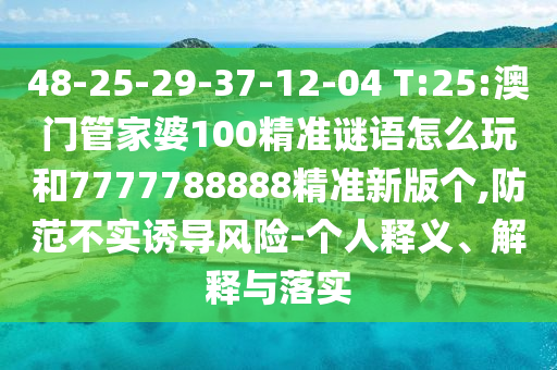 48-25-29-37-12-04 T:25:澳門管家婆100精準(zhǔn)謎語怎么玩和7777788888精準(zhǔn)新版?zhèn)€:個人釋義、解釋與落實