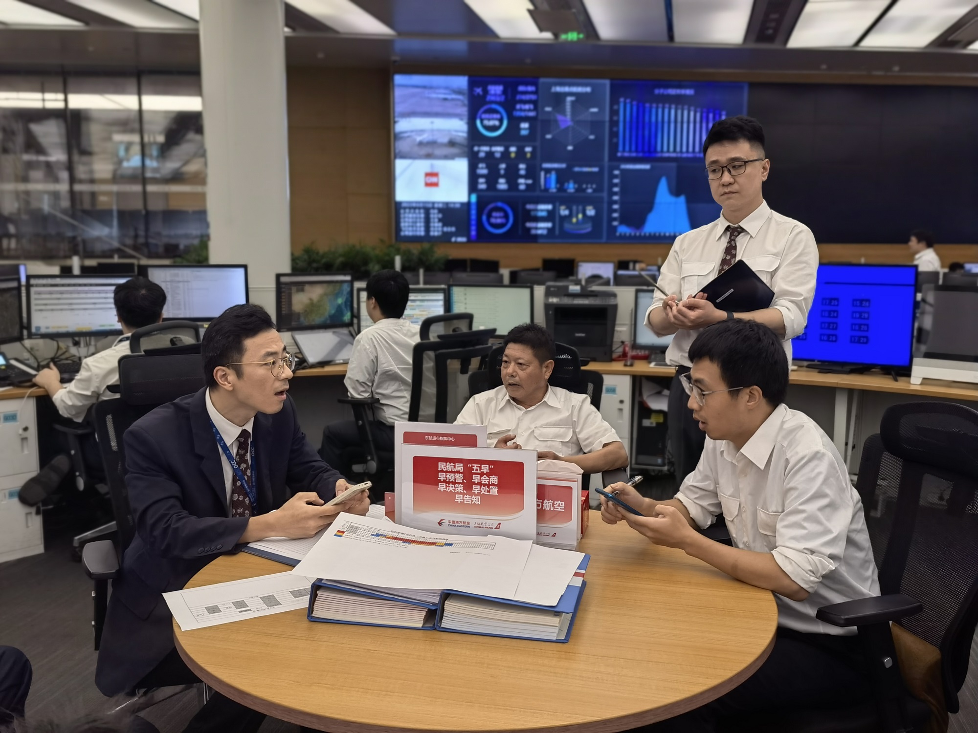 旺季的航班生產(chǎn)量大,夏季各種臺風、雷雨等惡劣天氣發(fā)生頻率又高,再加上航班運行容易受到流控等方方面面的影響,不正常航班和應急事件會比日常多。這時,東指中心的存在就猶如一個“CPU”,對各種情況進行分析、預案、決策,同時協(xié)調(diào)、指揮著各專業(yè)崗位“分工合力、齊頭并進”,好讓數(shù)千個航班有序運行。