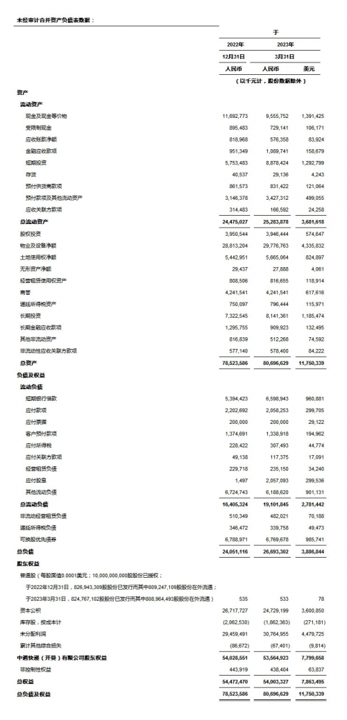 2023年第一季度未經(jīng)審計(jì)財(cái)務(wù)業(yè)績(jī)
