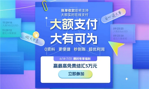 值得一提的是,6月14號(hào)至7月31號(hào)期間,PingPong福貿(mào)展開(kāi)限時(shí)專享賬單收款福利:最高免費(fèi)提現(xiàn)5萬(wàn)額度。用戶成功入賬1次可得免費(fèi)提現(xiàn)券1萬(wàn)額度;成功入賬3次可得免費(fèi)提現(xiàn)券3萬(wàn)額度;成功收取歐洲、北美買家付款且金額≥$1000,可得免費(fèi)提現(xiàn)券1萬(wàn)額度。