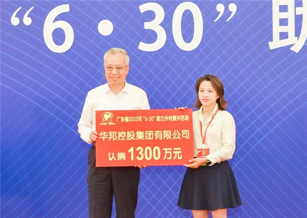 在捐贈環(huán)節(jié),華邦控股集團積極響應廣東省委、省政府號召,以責任詮釋擔當,華邦慈善基金會理事長蘇逸代表華邦舉牌捐贈1300萬元,以實際行動為廣東全面推進鄉(xiāng)村振興貢獻綿薄之力。作為廣東省百強民營企業(yè),華邦積極投身鄉(xiāng)村振興事業(yè),特別是近五年來持續(xù)加大幫扶力度,2019-2023年向廣東“6·30”活動累計捐贈6600萬元,彰顯了華邦和創(chuàng)始人蘇如春以善心善念支持慈善公益的價值理念。