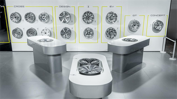 現(xiàn)場還展示了PLAY.STH的5個系列13款輪轂,分別為CROSS系列、X系列、GT系列、DES!GN系列、EV系列等,多款造型適配不同用車場景。這5個系列輪轂均為6061-T6 鋁合金材質的鍛造輪轂,結構強度高,成品輕量化。據了解,其中的CR01\CR02\CR03 款是國內首批獲得 LM 認證的輪轂,PLAY.STH所有輪轂產品在上市前均會主動完成車輪沖擊性能試驗、車輪動態(tài)彎曲疲勞性能試驗、車輪動態(tài)徑向疲勞性能試驗等輪轂三大安全性能試驗,漆膜品控堅持更高要求的車規(guī)級標準。內部輪轂及整車設計團隊溝通配合,確保產品在造型出眾的同時,滿足安全可靠的基本要求。