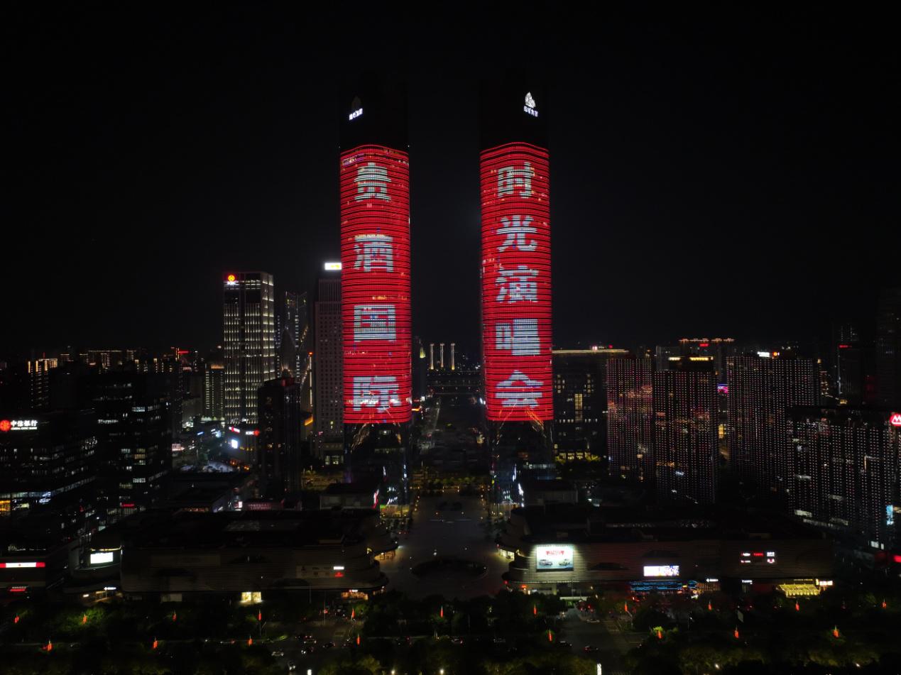 舞臺(tái)上,琥珀歲月,醉心時(shí)光,音樂穿越時(shí)空,喚起記憶的波瀾。演唱會(huì)以舞蹈《青花瓷》拉開序幕,舞者手中的青花瓷瓶,配合東方神韻的輕柔舞姿,這一切仿佛傾訴著貴酒國(guó)際對(duì)傳統(tǒng)文化的傳承與熱愛,將音樂與舞蹈的融合演繹得淋漓盡致。毛一涵、劉航、莫斯?jié)M、王強(qiáng)等依次登臺(tái),用歌聲跨越時(shí)光,共同體驗(yàn)音樂與時(shí)光交織的魅力。一場(chǎng)橫跨味覺與聽覺的盛會(huì),應(yīng)和滕王閣浩瀚雄姿?!队成郊t》、《紅旗飄飄》、《青藏高原》、《秋天不回來》等經(jīng)典旋律,讓現(xiàn)場(chǎng)觀眾感受到了濃郁的中國(guó)紅色文化與江西文化的底蘊(yùn)。觀眾們仿佛穿越時(shí)光,重溫那些難忘的年華,共同感懷著芳華歲月的美好回憶。