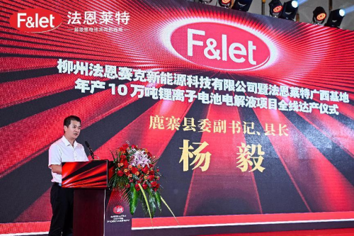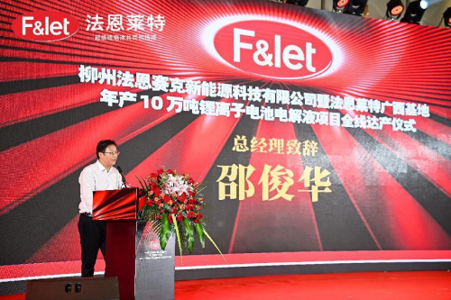 儀式上,法恩萊特邵俊華總經(jīng)理在致辭表示:柳州法恩賽克項(xiàng)目不僅是法恩萊特在華南區(qū)域作出的重大戰(zhàn)略部署,更是法恩萊特面向全球布局的重大舉措。法恩萊特將以此次項(xiàng)目全線達(dá)產(chǎn)為新的起點(diǎn),發(fā)揮公司的技術(shù)、戰(zhàn)略、規(guī)模和品牌等優(yōu)勢,深耕細(xì)作新能源鋰電池行業(yè)材料電解液市場,深化新能源鋰電池行業(yè)更大范圍、更寬領(lǐng)域的務(wù)實(shí)合作,為新能源汽車、儲能系統(tǒng)、消費(fèi)電池客戶提供更具優(yōu)勢、更高性能的超級鋰電池電解液解決方案,為新能源行業(yè)的持續(xù)創(chuàng)新貢獻(xiàn)更多力量。