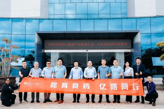 7月14日,全億健康產(chǎn)業(yè)集團(tuán)CEO萬(wàn)明治、執(zhí)行副總裁賀高華、副總裁孫磊率全億健康管理團(tuán)隊(duì)一行赴昆藥集團(tuán)股份有限公司參觀交流。昆藥集團(tuán)股份有限公司黨委書(shū)記、副董事長(zhǎng)顏煒,昆藥營(yíng)銷(xiāo)公司助理總裁鄧年虎攜一眾公司高管熱情接待來(lái)訪一行。