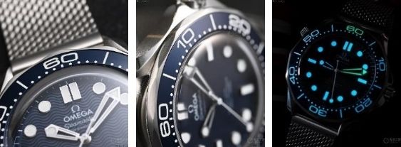 海馬300米“詹姆斯·邦德60周年紀(jì)念款”腕表的盤面,使用激光雕刻的波紋圖案,這一造型和上世紀(jì)90年代的早期海馬300米腕表保持一致,但取消了日歷。需要注意的是,新款腕表的秒針使用了“棒棒糖”秒針,其在歐米茄古董腕表中經(jīng)常出現(xiàn),是歐米茄復(fù)古風(fēng)格的一個(gè)特征。在售的海馬300腕表和2015年的《007:幽靈黨》中,詹姆斯·邦德佩戴的歐米茄海馬300腕表(注意:海馬300和海馬300米不是同一枚腕表)中同樣帶有罕見的“棒棒糖”秒針。