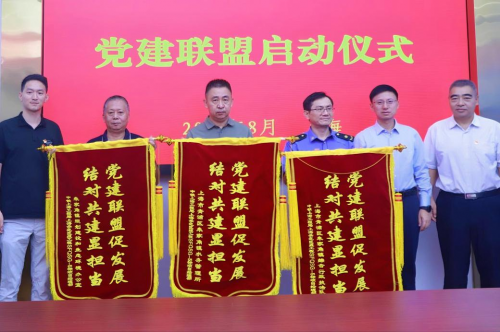 啟動(dòng)儀式現(xiàn)場(chǎng),青浦區(qū)朱家角鎮(zhèn)黨委委員王磊,中鐵上海工程局集團(tuán)有限公司城建分公司黨委副書(shū)記、工會(huì)主席張文續(xù),上海申鐵投資有限公司項(xiàng)目經(jīng)理何喬石現(xiàn)場(chǎng)為各聯(lián)建單位授予“黨建聯(lián)盟促發(fā)展,結(jié)對(duì)共建顯擔(dān)當(dāng)”錦旗,并共同見(jiàn)證上海示范區(qū)線5標(biāo)項(xiàng)目部與各單位締結(jié)《黨建聯(lián)建協(xié)議書(shū)》。據(jù)了解,聯(lián)盟成立后,各聯(lián)建單位將相互交流黨建工作經(jīng)驗(yàn),共同開(kāi)展黨建共建活動(dòng),通過(guò)推進(jìn)區(qū)域化黨建,盤(pán)活黨組織力量資源,實(shí)現(xiàn)黨建與生產(chǎn)深度融合,以高質(zhì)量黨建引領(lǐng)高質(zhì)量發(fā)展。