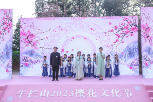 開幕式在孩子們的朗朗讀書聲中緩緩拉開,一群少年身著漢服在朝陽中誦讀《少年中國說》、《水調(diào)歌頭》。牛欄山地區(qū)黨委書記姜惠琴在致辭時(shí)表示:“以櫻花為媒,舉辦此次櫻花節(jié)活動(dòng),以沉浸式場景演出,融入全民閱讀,文明創(chuàng)城等活動(dòng),相信能夠給大家?guī)硪粓鑫幕⒀?#xff0c;也將為順義區(qū)打造一個(gè)更加亮麗、持久的文化旅游城市名片?!?月23日,將迎來第28個(gè)世界讀書日。牛欄山作為全國文明鎮(zhèn),姜惠琴在此倡導(dǎo)大家多讀書,讀好書,以書為媒,為文明創(chuàng)城創(chuàng)建賦能添彩,讓全民閱讀之氣彌漫,讓文明在全社會(huì)蔚然成風(fēng)。