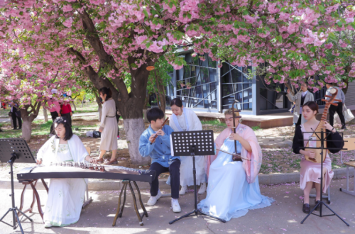 賞櫻線路上,櫻花大道內(nèi)一群青年大學(xué)生身懷技藝,各式才藝展演,民樂、古箏獨(dú)奏、管弦、鋼琴獨(dú)奏、快閃《愛出發(fā)》《花?!贰肚啻壕毩?xí)冊(cè)》《不得不愛》《后會(huì)無期》街舞、中國舞、樂隊(duì)青春活力,青年大學(xué)生校園科技文化展示區(qū)機(jī)器人展示、大賽作品及藏品展、模型沙盤互動(dòng)、環(huán)保、創(chuàng)城互動(dòng)區(qū)地球日主題、綠色農(nóng)業(yè)創(chuàng)城理念、經(jīng)濟(jì)普法知識(shí)互動(dòng),展示了當(dāng)代大學(xué)生的蓬勃的創(chuàng)新精神和社會(huì)責(zé)任感。