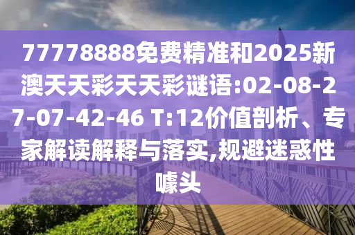 77778888免費精準和2025新澳天天彩天天彩謎語:02-08-27-07-42-46 T:12價值剖析、專家解讀解釋與落實,規(guī)避迷惑性噱頭