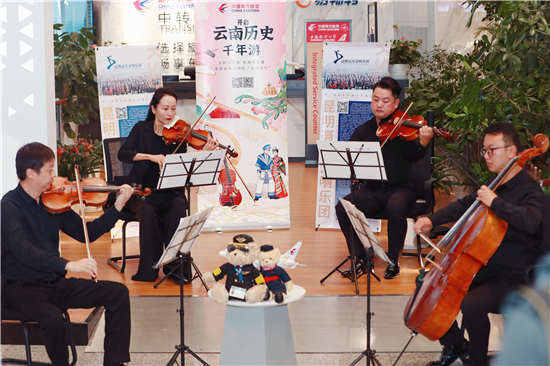 值得一提的是,中國唯一一支以人民音樂家“聶耳”命名的交響樂團(tuán)——昆明聶耳交響樂團(tuán),在主題航班首航儀式活動現(xiàn)場,用專業(yè)、優(yōu)雅的演奏,帶領(lǐng)旅客走進(jìn)云南,靈動的音符、悅耳的曲調(diào)贏得了旅客的稱贊與掌聲。