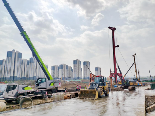 截至目前,項目前期四證已辦理完成,臨時用水接駁施工、圍擋施工、沖洗平臺搭建、臨電供電配置、支護(hù)樁及工程樁施工已基本完成,目前正在進(jìn)行主樓土方開挖和塔吊安裝工作。