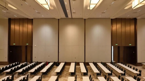 三層宴會(huì)廳,承載接待宴會(huì)等需求,通高的高大隔斷分布中間,能將宴會(huì)廳分割為兩個(gè)獨(dú)立的空間,方便靈活使用。