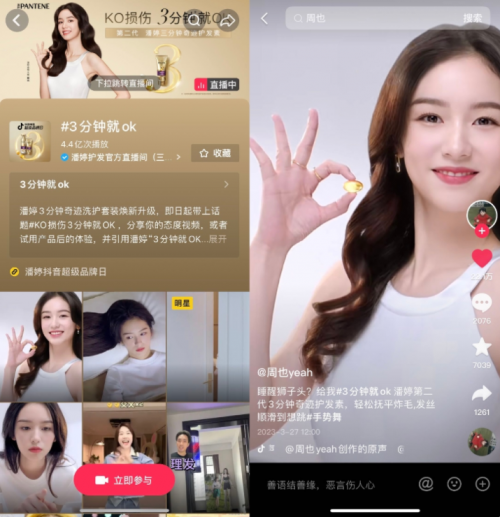 4月1日上海,潘婷與抖音電商超級(jí)品牌日攜手舉辦了以“3分鐘就OK”為主題的3分鐘奇跡洗護(hù)新品發(fā)布會(huì),重磅宣布了3分鐘奇跡洗護(hù)套裝的煥新上市,并展現(xiàn)潘婷產(chǎn)品升級(jí)后的使用體驗(yàn)及提升修護(hù)效果,助力品牌實(shí)現(xiàn)聲量和銷量的雙突破,也為抖音電商超級(jí)品牌日增添標(biāo)桿型范本。