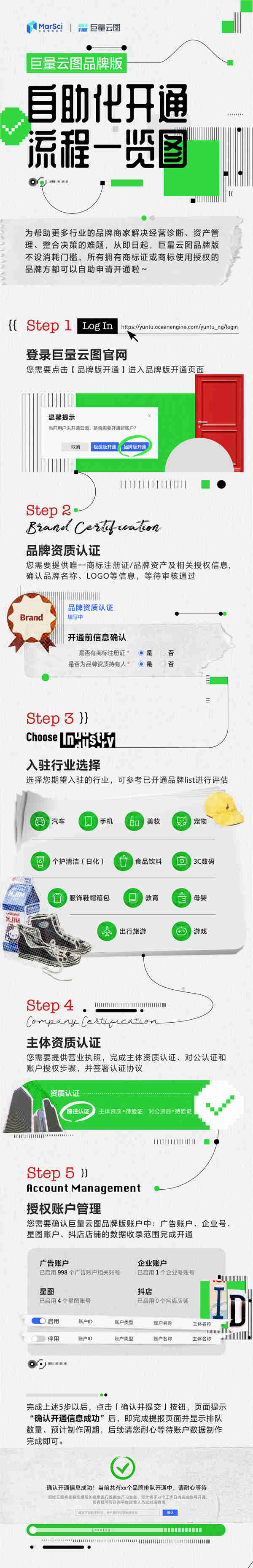為幫助更多行業(yè)的品牌商家解決經(jīng)營(yíng)、管理、決策難題,巨量云圖品牌版自助化開(kāi)通能力已上線,不設(shè)消耗門(mén)檻、無(wú)需直客銷(xiāo)售提報(bào),所有持有商標(biāo)證或商標(biāo)使用授權(quán)的品牌,在登陸官網(wǎng)后,均可根據(jù)流程指引進(jìn)行自助化開(kāi)通。