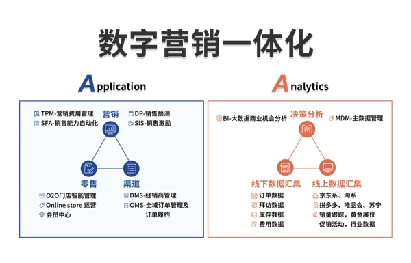 賽博威雙A模型,為企業(yè)搭建并打通相關(guān)系統(tǒng)(Application),通過數(shù)據(jù)洞察分析(Analytics)實現(xiàn)企業(yè) 私域數(shù)據(jù) 資產(chǎn)沉淀及數(shù)據(jù)智能分析,推動企業(yè)數(shù)據(jù)商業(yè)化應(yīng)用。 雙A合璧,助力企業(yè)打破信息孤島,建立企業(yè)私域數(shù)據(jù)體系。在提升不同職能和部門之間的協(xié)同能力、建立創(chuàng)新及技術(shù)驅(qū)動的業(yè)務(wù)模式的同時,通過智能數(shù)據(jù)分析,激發(fā)企業(yè)營銷鏈路數(shù)據(jù)價值,輔助戰(zhàn)略決策,推動整個價值鏈智慧創(chuàng)造,助力實現(xiàn)業(yè)務(wù)可持續(xù)增長,為未來接入人工智能做好準(zhǔn)備。