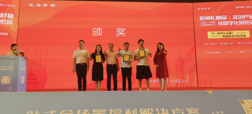 次日,6月28日,貴州禮品資源對接會晚宴暨“中國好禮品大賽”貴陽專場頒獎典禮在貴陽世紀金源大酒店隆重舉行,入圍貴陽專場初賽的獲獎企業(yè)選手和入圍復(fù)賽的獲獎企業(yè)選手依次走上舞臺,于臺前接受頒獎并合影。