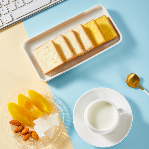 更讓人驚喜的,除了原有的原味、抹茶味、檸檬味等口味,梅尼耶干蛋糕又新研發(fā)出了添加真實(shí)黃桃果粒黃桃味、添加椰子片的椰子味以及含有巴旦木片的巴旦木味三種口味。 “老婆餅”里不一定有“老婆”,梅尼耶干蛋糕的新口味里可有真材實(shí)料噢!