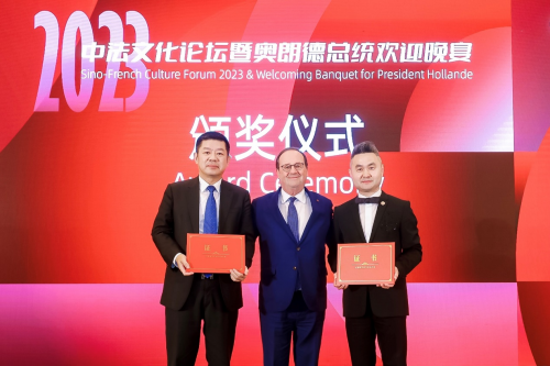 4月28日,由中國未來研究會(huì)一帶一路專業(yè)委員會(huì)主辦,北京國宏經(jīng)濟(jì)文化發(fā)展研究院承辦的2023中法文化論壇暨奧朗德總統(tǒng)歡迎晚宴在澳門舉行。熱烈祝賀GEMCORé珈蔻榮膺“法國對外友好交流榮譽(yù)品牌”殊榮!熱烈祝賀法國珈蔻國際公司CEO楊建國榮獲“中法友好交流大使”!歡迎晚宴上,奧朗德總統(tǒng)給法國珈蔻國際公司頒發(fā)了榮譽(yù)證書。