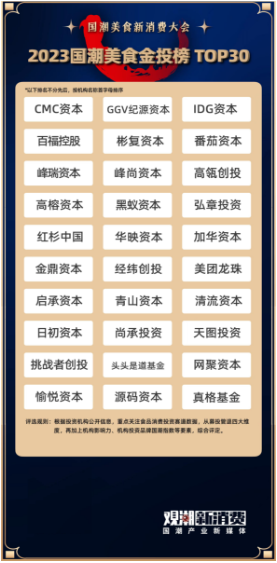 《2023國(guó)潮美食金投榜·TOP30》則用來(lái)表彰資本作為新消費(fèi)潮流興起的預(yù)見者、助推器與價(jià)值捕手,在企業(yè)發(fā)展的道路上所發(fā)揮的舉足輕重的作用。