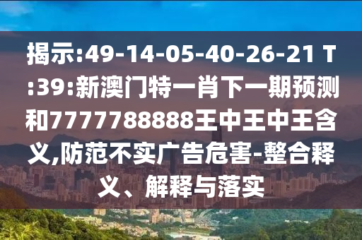揭示:49-14-05-40-26-21 T:39:新澳門特一肖下一期預(yù)測和7777788888王中王中王含義,防范不實(shí)廣告危害-整合釋義、解釋與落實(shí)