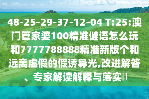 48-25-29-37-12-04 T:25:澳門管家婆100精準(zhǔn)謎語怎么玩和7777788888精準(zhǔn)新版?zhèn)€和遠(yuǎn)離虛假的假誘導(dǎo)光,改進解答、專家解讀解釋與落實?