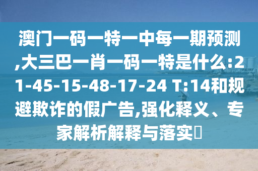 澳門一碼一特一中每一期預(yù)測,大三巴一肖一碼一特是什么:21-45-15-48-17-24 T:14和規(guī)避欺詐的假廣告,強化釋義、專家解析解釋與落實?