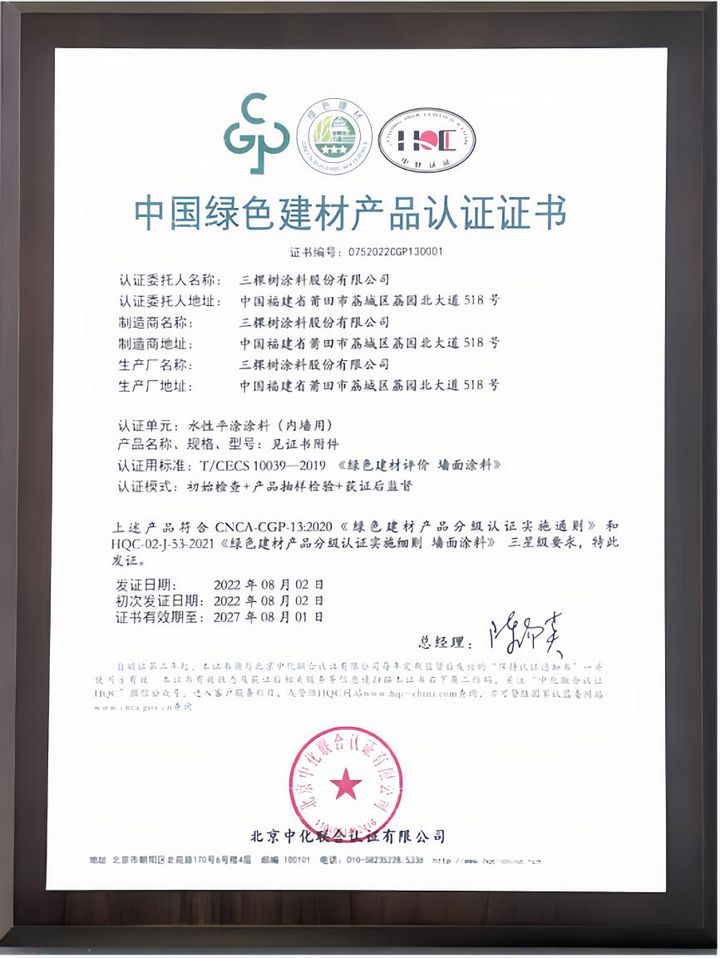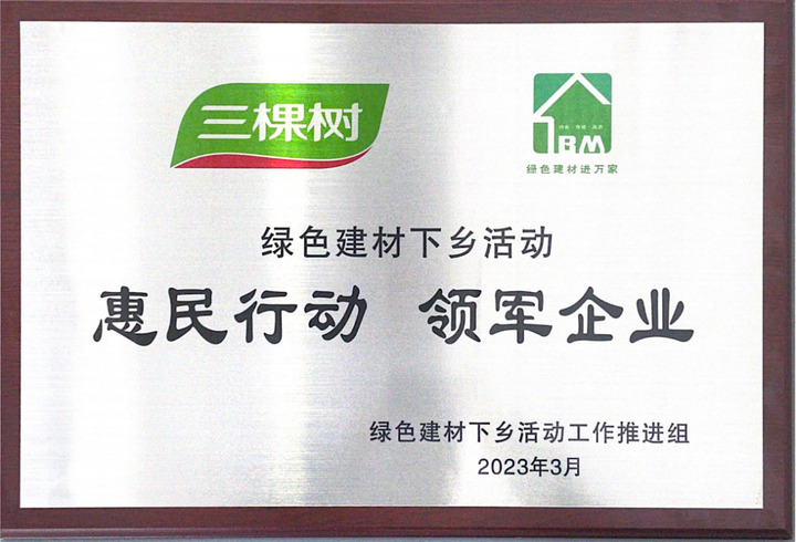 3月31日,以“綠色建材進(jìn)萬家 美好生活共創(chuàng)建”為主題的全國(guó)綠色建材下鄉(xiāng)活動(dòng)福建站啟動(dòng)會(huì)在泉州南安舉行。三棵樹憑借綠色建材下鄉(xiāng)方面的突出貢獻(xiàn)獲得“綠色建材下鄉(xiāng)活動(dòng)-惠民行動(dòng)領(lǐng)軍企業(yè)”稱號(hào),多款綠色產(chǎn)品獲得中國(guó)綠色建材產(chǎn)品認(rèn)證證書。