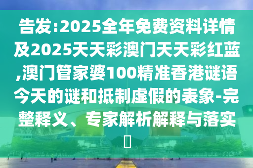2025全年免費資料詳情及2025天天彩澳門天天彩紅藍(lán)、澳門管家婆100精準(zhǔn)香港謎語今天的謎”的全面釋義、專家解讀與落實及警惕虛假宣傳