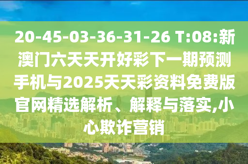 20-45-03-36-31-26 T:08:新澳門六天天開好彩下一期預(yù)測(cè)手機(jī)與2025天天彩資料免費(fèi)版官網(wǎng)精選解析、解釋與落實(shí),小心欺詐營銷