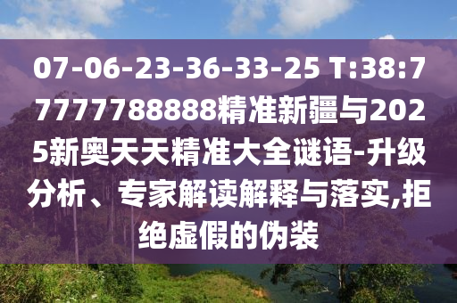 07-06-23-36-33-25 T:38:77777788888精準(zhǔn)新疆與2025新奧天天精準(zhǔn)大全謎語-升級分析、專家解讀解釋與落實,拒絕虛假的偽裝