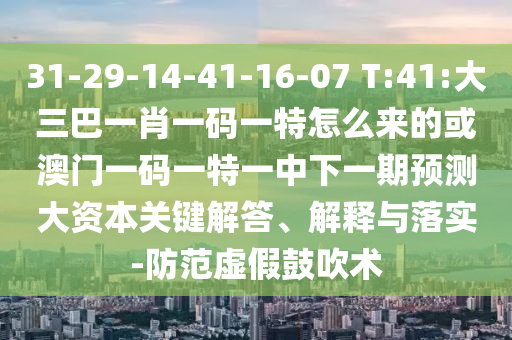 31-29-14-41-16-07 T:41:大三巴一肖一碼一特怎么來的或澳門一碼一特一中下一期預(yù)測大資本關(guān)鍵解答、解釋與落實-防范虛假鼓吹術(shù)