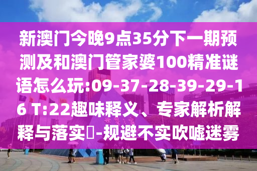 新澳門今晚9點(diǎn)35分下一期預(yù)測(cè)及和澳門管家婆100精準(zhǔn)謎語怎么玩:09-37-28-39-29-16 T:22的趣味釋義、專家解析解釋與落實(shí)?