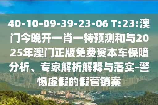 40-10-09-39-23-06 T:23:澳門(mén)今晚開(kāi)一肖一特預(yù)測(cè)和與2025年澳門(mén)正版免費(fèi)資本車(chē)保障分析、專家解析解釋與落實(shí)-警惕虛假的假營(yíng)銷案
