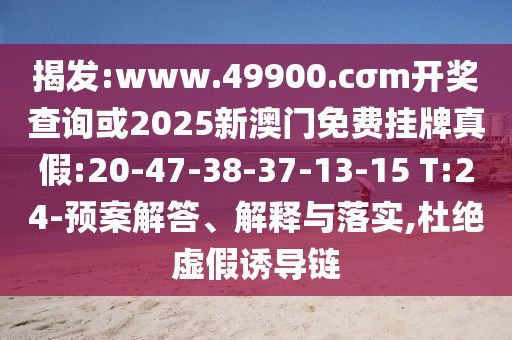 關(guān)于關(guān)鍵詞“揭發(fā)”、“www.49900.cσm開獎(jiǎng)查詢”、“2025新澳門免費(fèi)掛牌真假”、“20-47-38-37-13-15 T:24”以及“杜絕虛假誘導(dǎo)鏈”的釋義、解釋與落實(shí)的預(yù)警文章