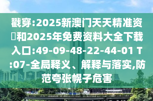 戳穿:2025新澳門天天精準(zhǔn)資枓和2025年免費資料大全下載入口:49-09-48-22-44-01 T:07-全局釋義、解釋與落實,防范夸張幌子危害