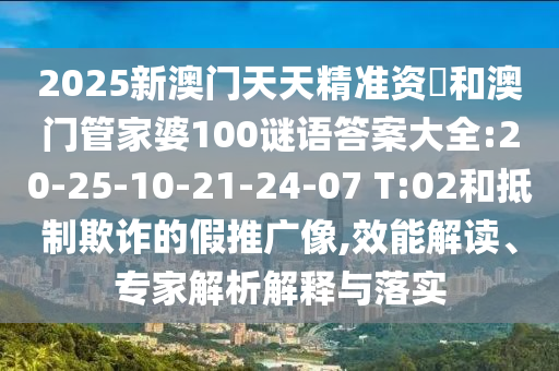 2025新澳門天天精準資枓和澳門管家婆100謎語答案大全:20-25-10-21-24-07 T:02和抵制欺詐的假推廣像,效能解讀、專家解析解釋與落實
