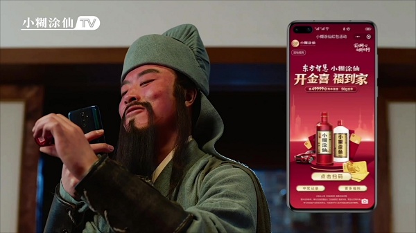 活動以開蓋掃碼抽獎為主要形式,消費者購買小糊涂仙指定酒品,開蓋掃碼即可抽取49999元購車基金、50g虎年傳世金條、2g足金金條及海量微信現(xiàn)金紅包等。“開金喜 福到家”活動在線下掃碼開獎,回饋消費者的同時,小糊涂仙于雙微平臺推出social短片《酒煮三國》,以三國時代為背景,結合產(chǎn)品人群與活動賣點,巧妙地將“開金喜 福到家”活動的核心內(nèi)容傳遞給消費者,用古風爆梗玩出活動新花樣,從滿屏的春節(jié)營銷熱潮中突圍。