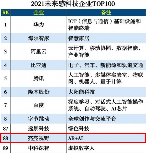 近日,互聯(lián)網(wǎng)周刊發(fā)布“2021未來感科技企業(yè)TOP100”榜單。榜單聚焦前沿科學(xué)技術(shù),并且能夠把科技成果轉(zhuǎn)化為可觸達(dá)的產(chǎn)品。憑借七年高質(zhì)量穩(wěn)健發(fā)展和商業(yè)模式創(chuàng)新,作為行業(yè)獨角獸的亮亮視野在AR+AI領(lǐng)域的深耕顯而易見,與華為、阿里云、比亞迪、騰訊、百度等中國一線科技公司一道入選榜單。
