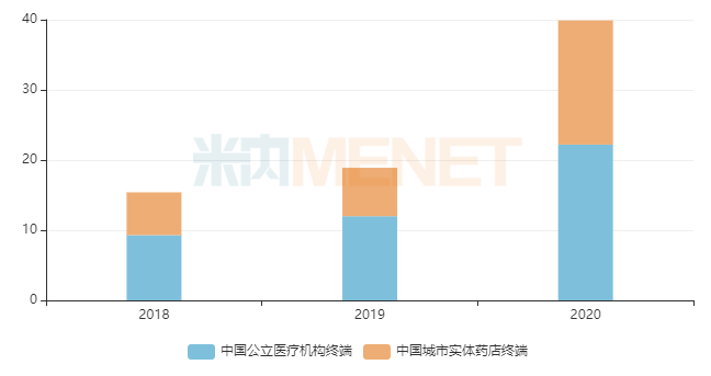 連花清瘟在國(guó)內(nèi)整體銷售情況(億元)。來(lái)源:米內(nèi)網(wǎng)
