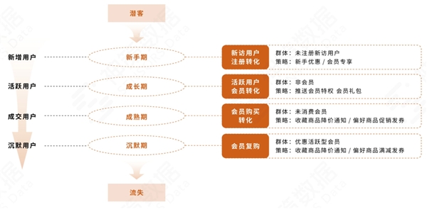 3、新國(guó)貨連鎖餐飲品牌應(yīng)對(duì)消費(fèi)者生命周期進(jìn)行分層,從而實(shí)現(xiàn)消費(fèi)者全生命周期的精細(xì)化運(yùn)營(yíng)。