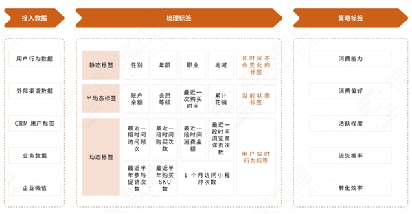 4、消費(fèi)者全生命周期運(yùn)營(yíng)的基礎(chǔ)是構(gòu)建動(dòng)靜結(jié)合的全域會(huì)員用戶標(biāo)簽體系,顆粒度越細(xì),越容易產(chǎn)生更好的落地效果。