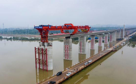 據(jù)中鐵三局項(xiàng)目負(fù)責(zé)人紀(jì)常永介紹,蘄河特大橋196米連續(xù)梁為全線重難點(diǎn)工程之一,大跨度連續(xù)梁拱縱移段總體水平長(zhǎng)度為185.5米,是國(guó)內(nèi)縱移段水平長(zhǎng)度之最。面對(duì)工序復(fù)雜,質(zhì)量要求高,施工安全風(fēng)險(xiǎn)大等困難,項(xiàng)目部成立了安全質(zhì)量工期攻關(guān)小組,實(shí)行24小時(shí)作業(yè),采用異位拼裝整體縱移施工方案,蘄河特大橋連續(xù)梁以八天一節(jié)段的施工進(jìn)度快速推進(jìn),保證了節(jié)點(diǎn)工期按期實(shí)現(xiàn)。