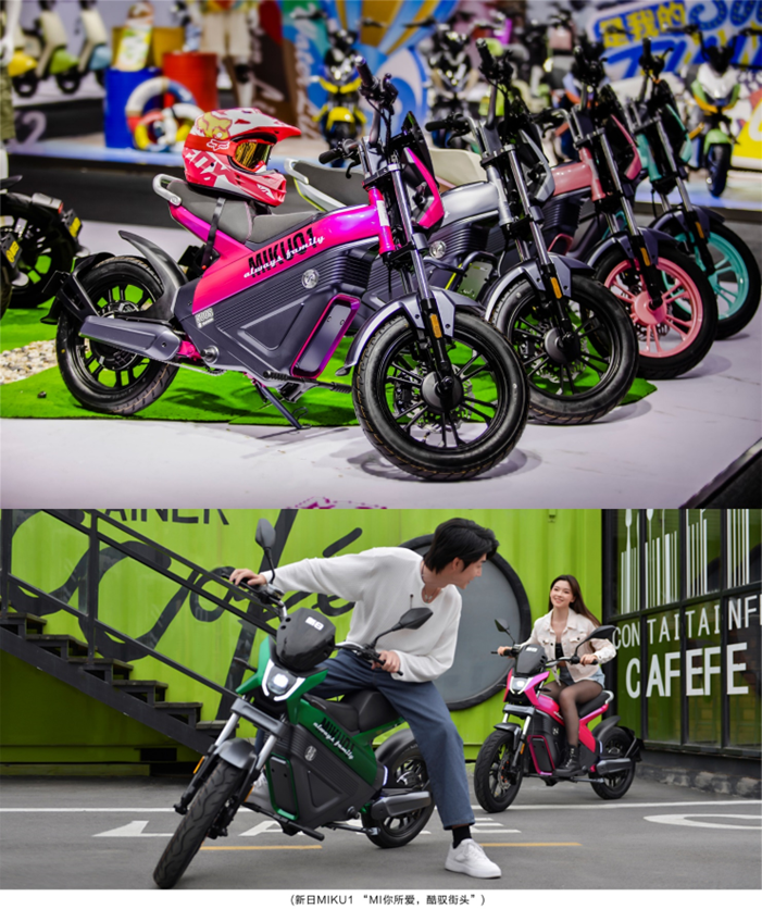 “MI你所愛 酷馭街頭”MIKU1:設計靈感來自于賽博朋克,極具未來感的機車外表,在“后現(xiàn)代迷幻美學”的賦能下,擁有了更加科幻的潮流美感,瞬間拉近與年輕人的溝通距離;