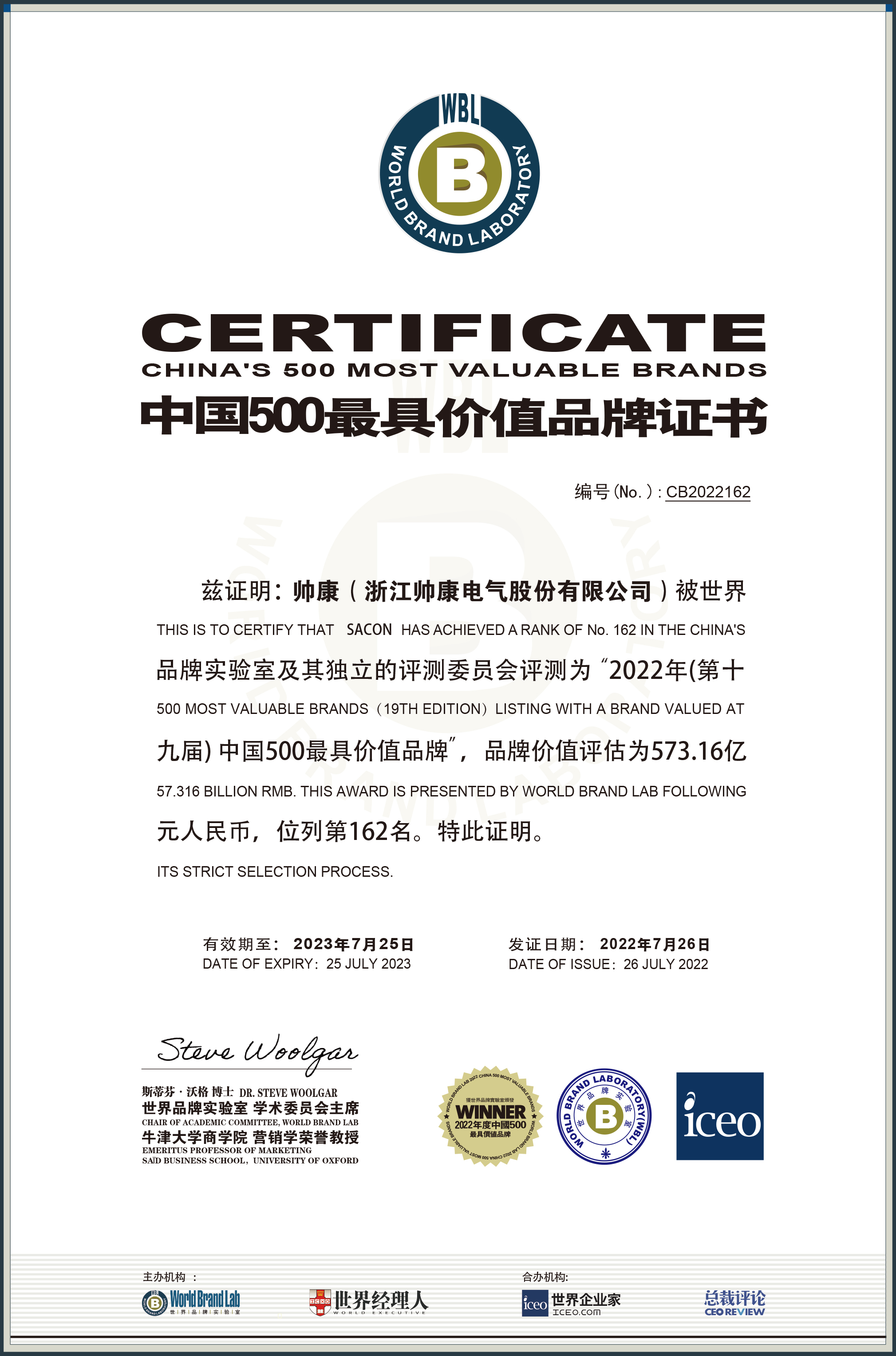 2022年7月26日,由世界品牌實驗室(World Brand Lab)主辦的第十九屆世界品牌大會在北京舉行,會上發(fā)布了2022年《中國500最具價值品牌》分析報告。作為健康廚房開創(chuàng)者,帥康以573.16億元的品牌價值連續(xù)15年強勢入選榜單,在專業(yè)廚電品牌中位列第一,品牌領(lǐng)跑地位得到行業(yè)內(nèi)外的廣泛認可。