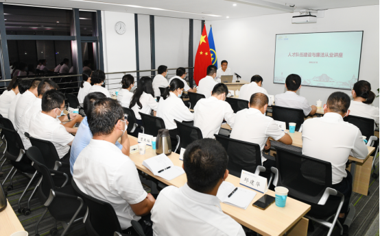 圖為公司紀(jì)委書記牛春忠在為優(yōu)訓(xùn)營(yíng)學(xué)員及近三年新入職員工開(kāi)展廉潔文化講座。