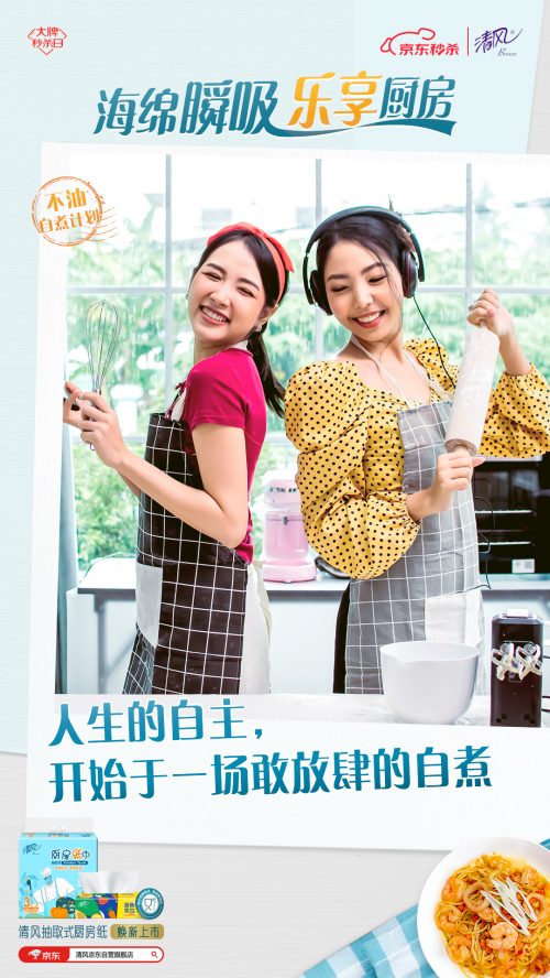 為此,清風(fēng)推出“不油自煮計(jì)劃”, 以煥新上市的清風(fēng)海綿吸廚房紙巾為依托,用“一抹即凈”的不油體驗(yàn)和“一掃就會(huì)”的自煮攻略,幫助用戶破除廚房恐懼,給不同身份的用戶輕松自煮不油膩的廚房體驗(yàn),讓TA們能不由自主地愛(ài)上烹飪,輕松享受做飯帶來(lái)的快樂(lè)。