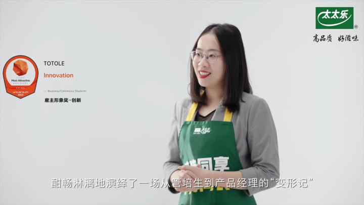 產(chǎn)品經(jīng)理Grace:太太樂作為中國雞精品類的領(lǐng)“鮮“者,其創(chuàng)立之初就自帶創(chuàng)新的基因。34年后的今天,太太樂正在開發(fā)更多滿足消費者需求的新產(chǎn)品,我也有幸成為了其中的參與者。在工作中創(chuàng)造不同的同時,得益于定制化的職業(yè)發(fā)展路徑,我成功從一名管培生蛻變成了獨當(dāng)一面的產(chǎn)品經(jīng)理,獨立負(fù)責(zé)一個產(chǎn)品系列和領(lǐng)導(dǎo)一支團(tuán)隊。作為這種鼓勵創(chuàng)新、擁抱人才的文化的受益者,我也會在接下來的團(tuán)隊管理中支持晚輩的新點子,為他們提供職業(yè)發(fā)展指導(dǎo),助力他們成為更好的自己。