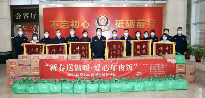 由中國企業(yè)報福建公司發(fā)起的“2023愛心年夜飯送輔警活動”第三個中國人民警察節(jié)當天在廈門市公安局大院隆重舉行,來自羅普特科技集團股份有限公司、福建重宇合眾律師事務(wù)所、廈門綠進食品有限公司、廈門達川臻富食品有限公司、廈門見福連鎖管理有限公司等愛心企業(yè)為廈門輔警支隊一線輔警送來了節(jié)日的問候和預(yù)制菜、油、果汁等愛心年夜飯“大禮包”,以及口罩等防疫物資,向奮斗在在一線守護廈門城市平安的執(zhí)勤輔警表示感激和敬意。
