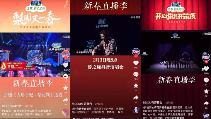 同樣是在今年CNY活動(dòng)期間,優(yōu)萃有機(jī)奶粉合作了《梨園又一春》、《薛之謙演唱會》、《開心麻花開箱夜》等自帶關(guān)注度、話題性和高熱曝光的直播項(xiàng)目,這其中涵蓋戲曲、音樂、小品等多類型,滿足了不同圈層受眾的內(nèi)容需求。無論是別致氣韻的戲曲盛宴、讓人捧腹的喜劇專場還是高品質(zhì)音樂沉浸表演,都將春節(jié)氛圍拉至高潮,而借勢節(jié)目本身的影響力和傳播力,優(yōu)萃有機(jī)奶粉在收獲不俗流量的同時(shí),再一次將“讓小寶寶先吃上有機(jī)食品”的品牌信息進(jìn)行了生動(dòng)植入。
